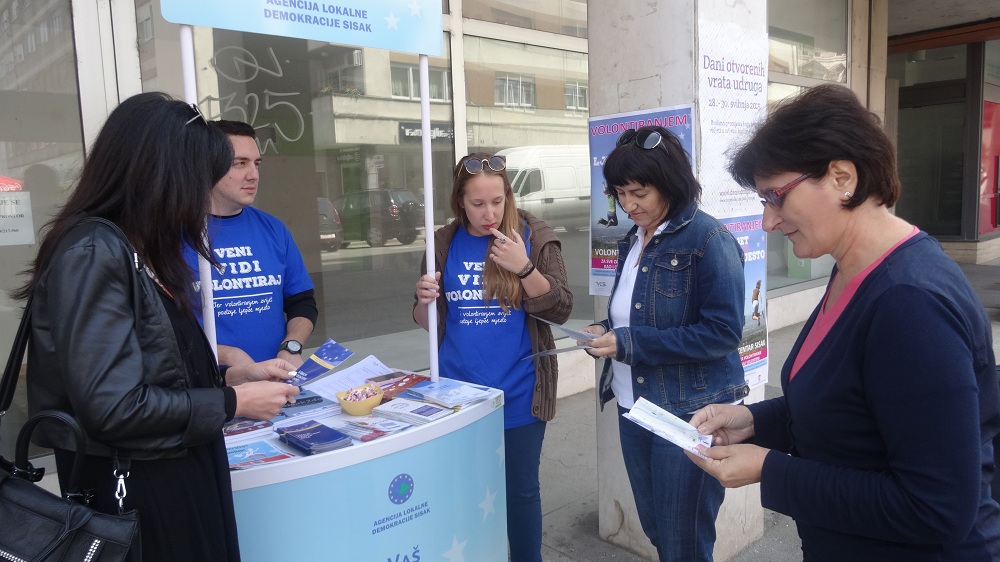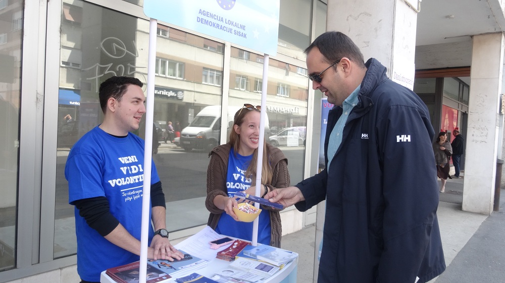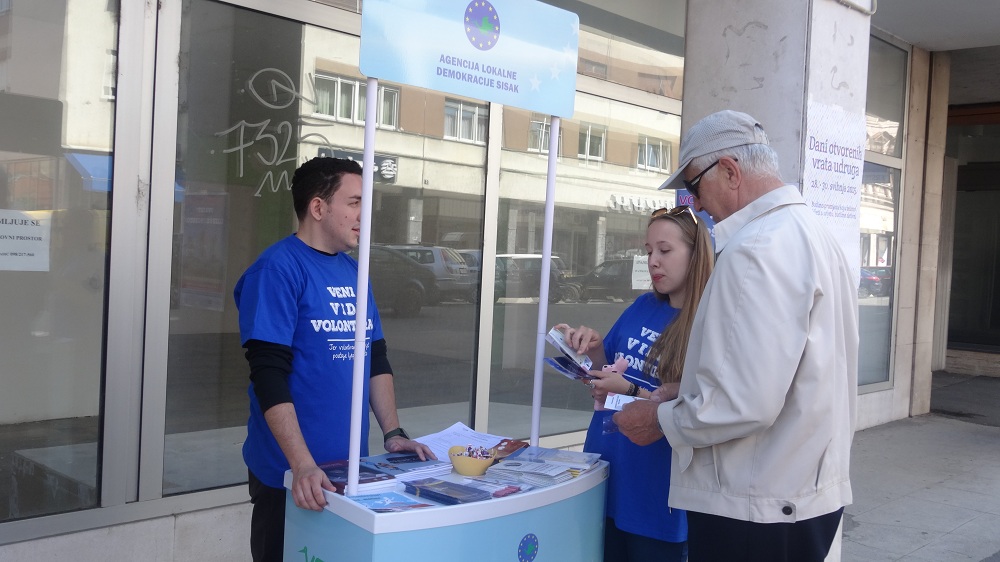 Agencija lokalne demokracije Sisak otvorila je svoja vrata informirajući građanke i građane o volontiranju na svom štandu u centru Siska.