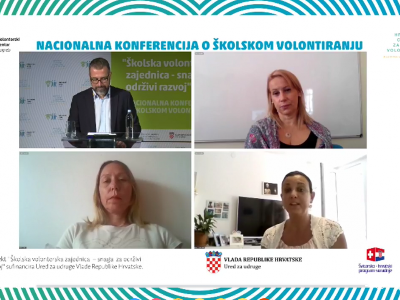 Volonterski centar Zagreb 2. srpnja 2021. godine organizirao je Nacionalnu konferenciju o školskom volontiranju, pod nazivom “Školska volonterska zajednica – snaga za održivi razvoj”, koji se provodi kroz Švicarsko-hrvatski program suradnje kojeg sufinancira Ured za udruge Vlade Republike Hrvatske.