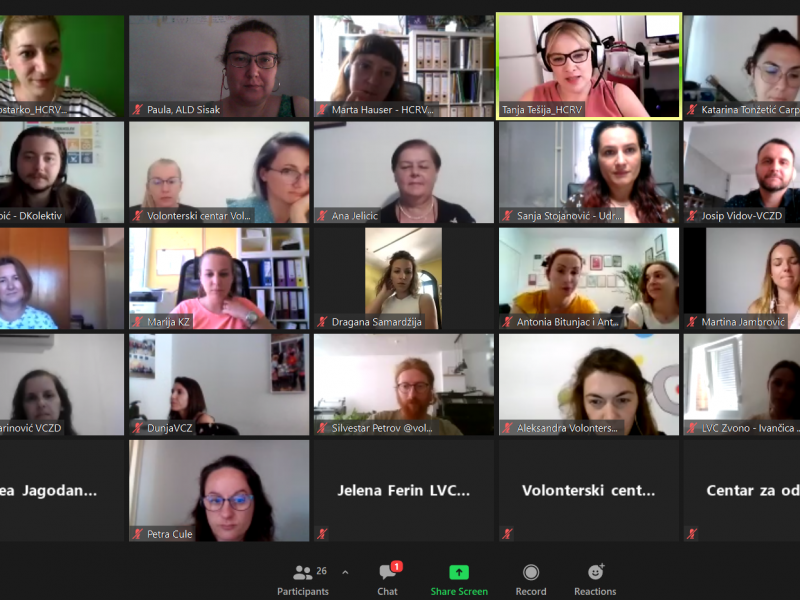 Hrvatski centar za razvoj volonterstva organizirao je 1. srpnja 2021. godine online sastanak koji je okupio predstavnike 25 lokalnih i regionalnih Volonterskih centara u Hrvatskoj.