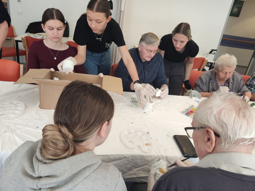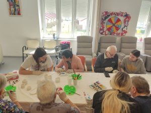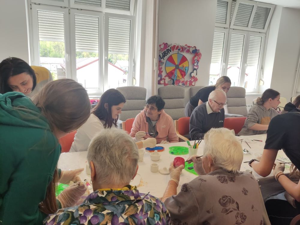 Tijekom uskrsnih praznika učenice su pripremale kreativne materijale i kalupe od gipsa, a tijekom susreta u Domu zajedno s korisnicima oslikavale su ih, ukrašavale i pretvarale u šarene dekorativne predmete. Radionica je protekla u vedrom i suradničkom ozračju, uz mnogo razgovora, smijeha i međusobnog pomaganja.